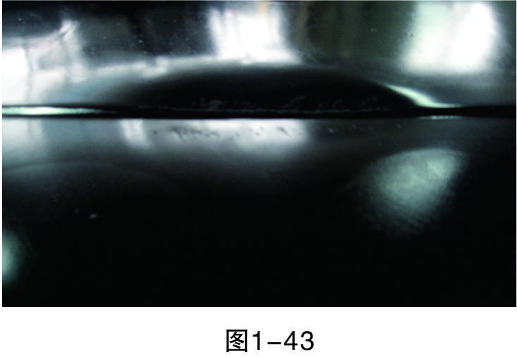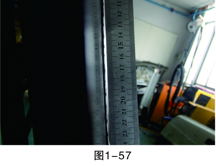 步驟16(檢查修復(fù)效果):用直尺測量修復(fù)平面與完好平面是否在同一平面上。如圖1-57所示,修復(fù)平面與完好平面還有一定的誤差。