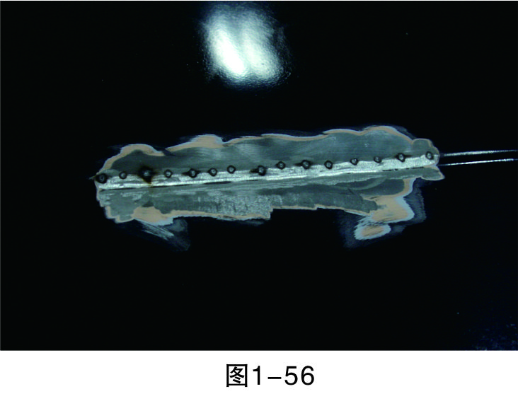 步驟5(直線焊接):把介子焊接成一條直線,為之后使用整形架做好準(zhǔn)備,如圖1-46所示。