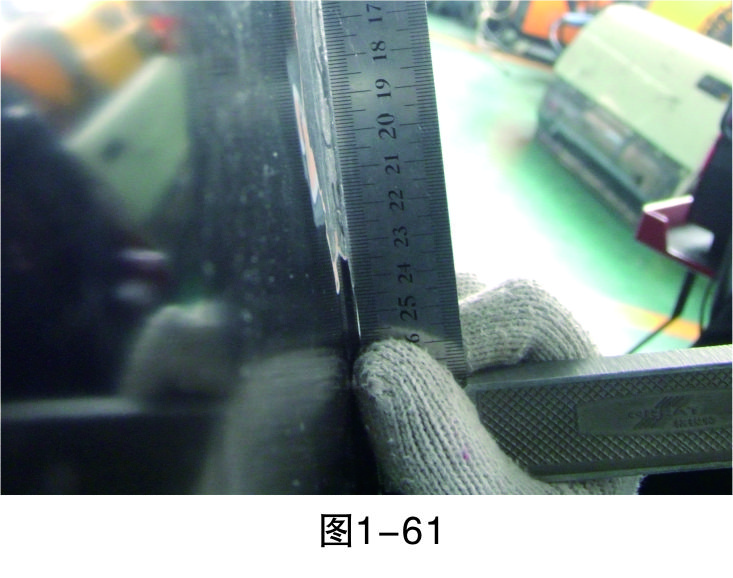 步驟20(測量):對修復(fù)平面進(jìn)行測量,檢查是否在同一水平線上,如果是就可結(jié)束鈑金修復(fù)作業(yè),否則重復(fù)前面步驟直至修復(fù)完成,如圖1-61所示。