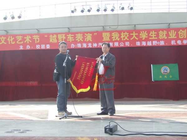 12月5日龍神公司與廣東科學(xué)技術(shù)職業(yè)學(xué)院聯(lián)合“越野e族”舉辦“第十七屆大學(xué)生文化藝術(shù)節(jié) 越野車文化交流表演暨大學(xué)生就業(yè)創(chuàng)業(yè)基地建設(shè)啟動儀式在廣科院校園隆重召開。此次大學(xué)生文化藝術(shù)節(jié)由廣科院校團(tuán)委主辦,龍神公司、越野e族協(xié)辦,出席此次活動的分別來自珠海,江門,中山,順德,澳門的越野e族朋友共八十多輛高級越野車參與;在緊張刺激的汽車轟鳴聲中拉開了序幕。