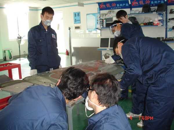 身穿龍神鈑噴工作服實操體驗鈑金修復技術(shù)