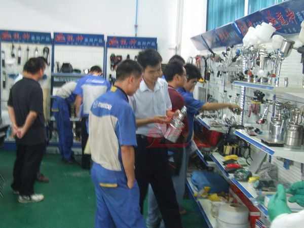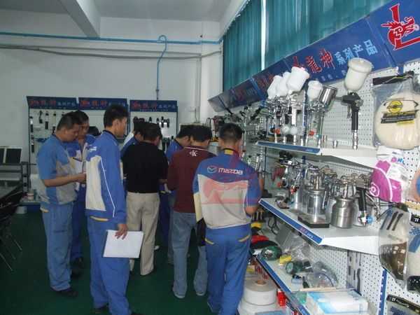 龍神講師向一汽馬自達(dá)的師傅介紹意大利威彩噴槍的優(yōu)點