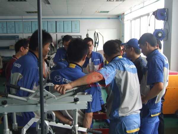 全國一汽馬自達(dá)各服務(wù)店都配備具有國際領(lǐng)先的鈑金維修工具設(shè)備,為了最大限度地利用這些高效率的工具設(shè)備,提升鈑金作業(yè)人員的技能及素養(yǎng),并為馬自達(dá)系統(tǒng)的售后服務(wù)體系打造一支鈑金維修技術(shù)過硬的隊伍。經(jīng)過一汽馬自達(dá)集團服務(wù)部統(tǒng)籌與組織,來自全國各地一汽馬自達(dá)服務(wù)店D0910班的第十期培訓(xùn)學(xué)員,于2009年10月14日到珠海接受鈑金技術(shù)提升培訓(xùn)。