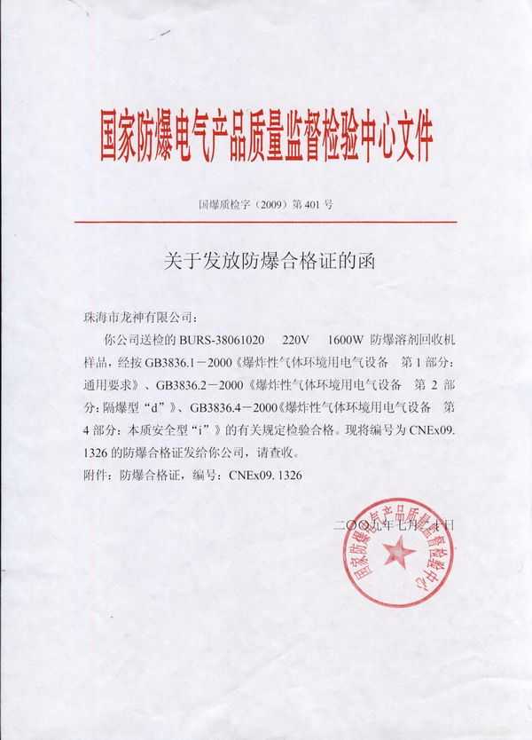 防爆認(rèn)可等級(jí)CLASS 1,DIVISION 1,GROUP D 225℃,由ETL認(rèn)證符合UL2208