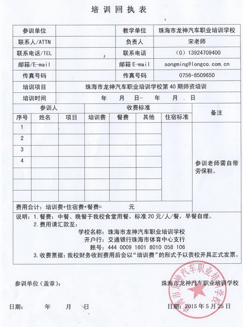 3、報(bào)名回執(zhí)表需在培訓(xùn)開始前3日,回傳至我校。