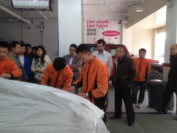 2013年特邀國外專家赴北京車爵士演示車縫泡膠條的使用 本司訊:2013年4月北京晴空萬里,龍神公司特邀英國專家一行五人,來到了北京車爵士進(jìn)行汽車噴涂遮蔽技術(shù)交流。首先公司一行了解車爵士的汽車噴涂情況及詢問了使用的遮蔽工具情況。隨后英國專家針對在汽車噴漆時(shí)難噴涂的車門縫隙、玻璃死角等地方的專業(yè)遮蔽工具的演示。車縫泡沫膠:用于車身所有縫隙的遮蔽,有效隔離及遮蔽漆霧噴入車縫里。 2013-04-08 12205