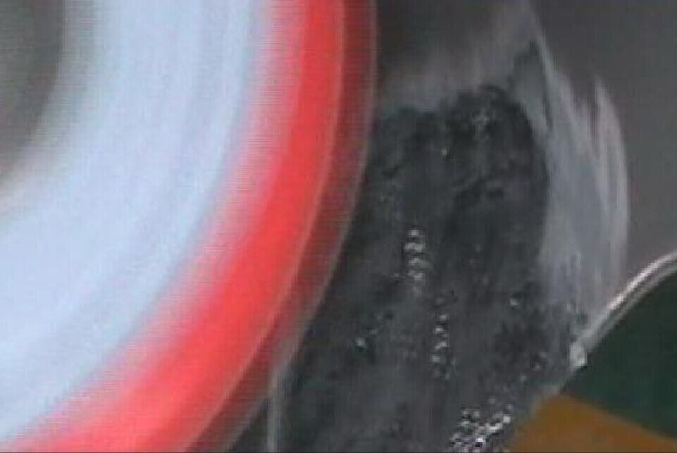 步驟8:等待熔膠干燥后,使用雙動打磨頭配120號砂紙,小心地對受損表面進行打磨,使其平整。打磨時,注意不要使無銹固網裸露,尤其對邊角的地方要特別注意,如圖1-8、圖1-9所示。