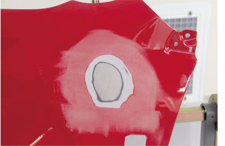 3. 施涂打磨指示劑后對(duì)原子灰區(qū)域進(jìn)行中間過(guò)渡打磨。