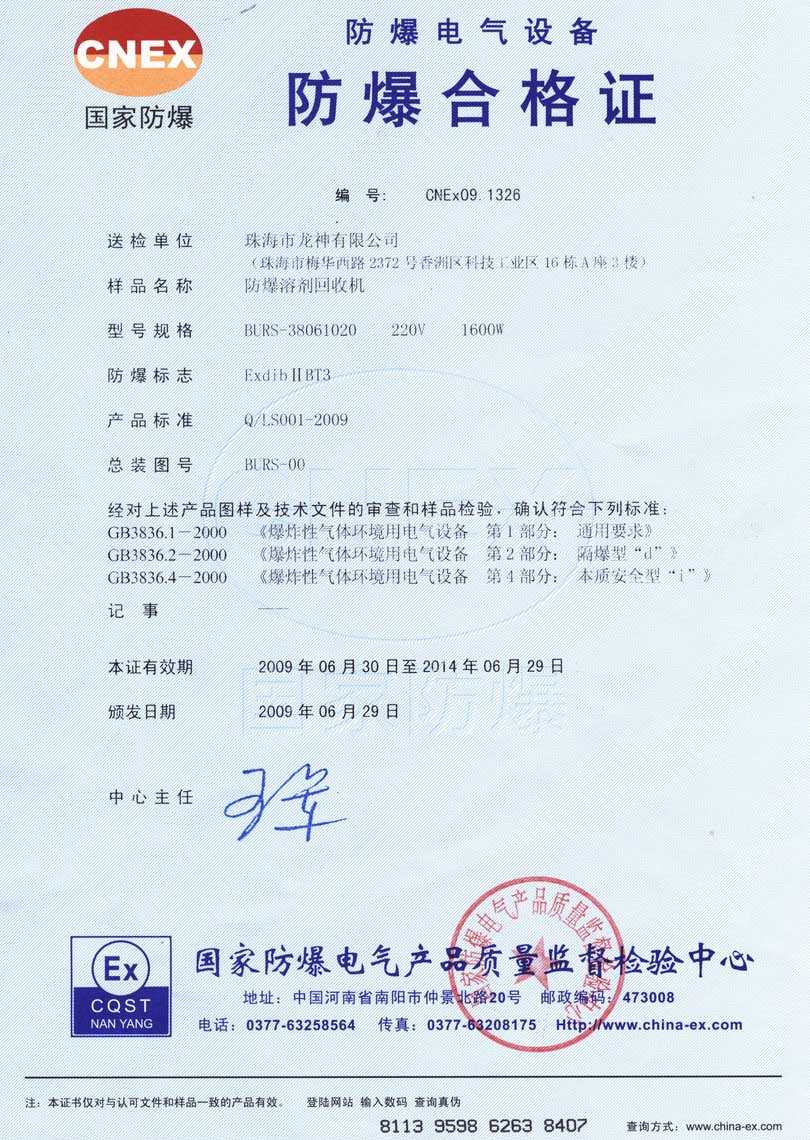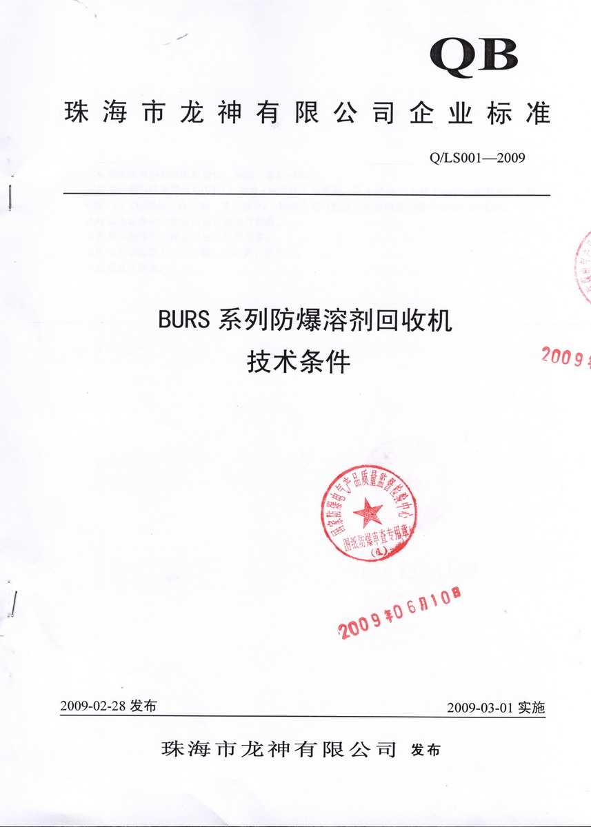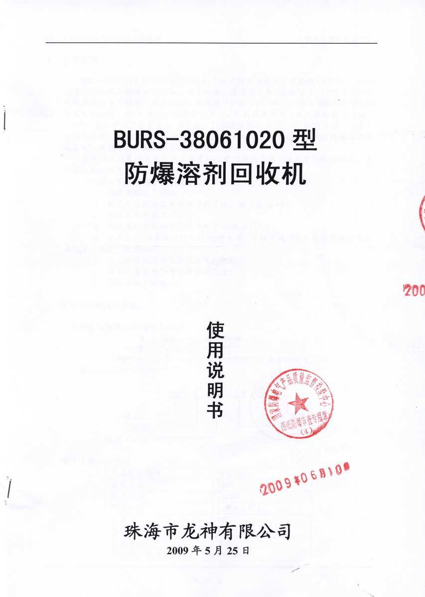 防爆認(rèn)證 防爆溶劑回收機(jī)防爆合格證 BURS系列防爆溶劑回收機(jī)技術(shù)條件 BURS-38061020型防爆溶劑回收機(jī) 使用說明書 BURS-38061020型防爆溶劑回收機(jī) 圖紙資料 (以上圖片均可點擊放大) 2012-11-27 35182