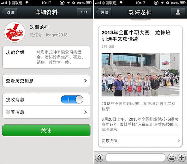 珠海龍神官方微信敬請關(guān)注! 珠海市龍神有限公司公共微信號已申請成功,請大家多多關(guān)注! 掃描二維碼,也可直接搜索公眾微信號“珠海龍神” 我們將不定期發(fā)布公司最新資訊。 您也可以發(fā)消息和我們進行互動。 查看歷史消息收看您錯過的動態(tài)新聞,讓您第一手掌握最新動態(tài)。 2013-09-18 16826